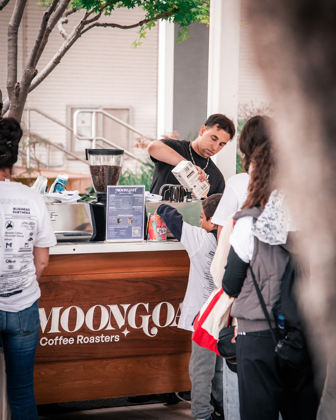 In a literal sense, we are hired by people planning events to bring a rolling cart with all of your traditional cafe equipment to set up and serve our drink menu to their guests. We offer everything: Specialty espresso-based classics, Ceremonial Matcha, & MoonGoat’s signature cafe drinks made by our seasoned professional catering barista staff who have decades of experience combined.